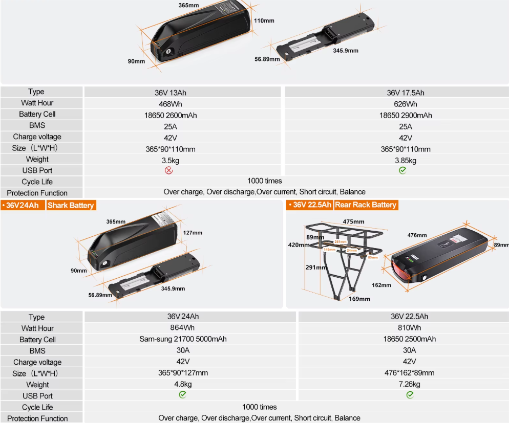 Akkumulátor, vázra szerelhető: 36V 13Ah