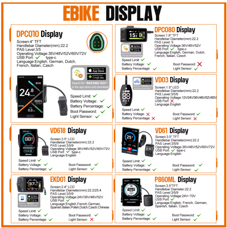 eBike komputer opciók